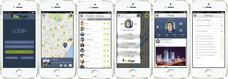 We are an indie-developer team of flaPnet. The team of young promising project, which even if not revolutionize the world of information technology, but at least brings something new and extraordinary. Our social network app is an elegant combination of familiar to many users such internet tools as Google Maps, messengers and Foursquare. We are not only trying to make communication easier between users but also want improve the lifestyle of people who do not sit at home, people who are on journeys or business trips, or just strolling through the native city. Another great plus is that flaPnet going to make closest connection in history between offline business and online users when acquaintance, a call to action and direct relationship, are at a distance of one small tap.